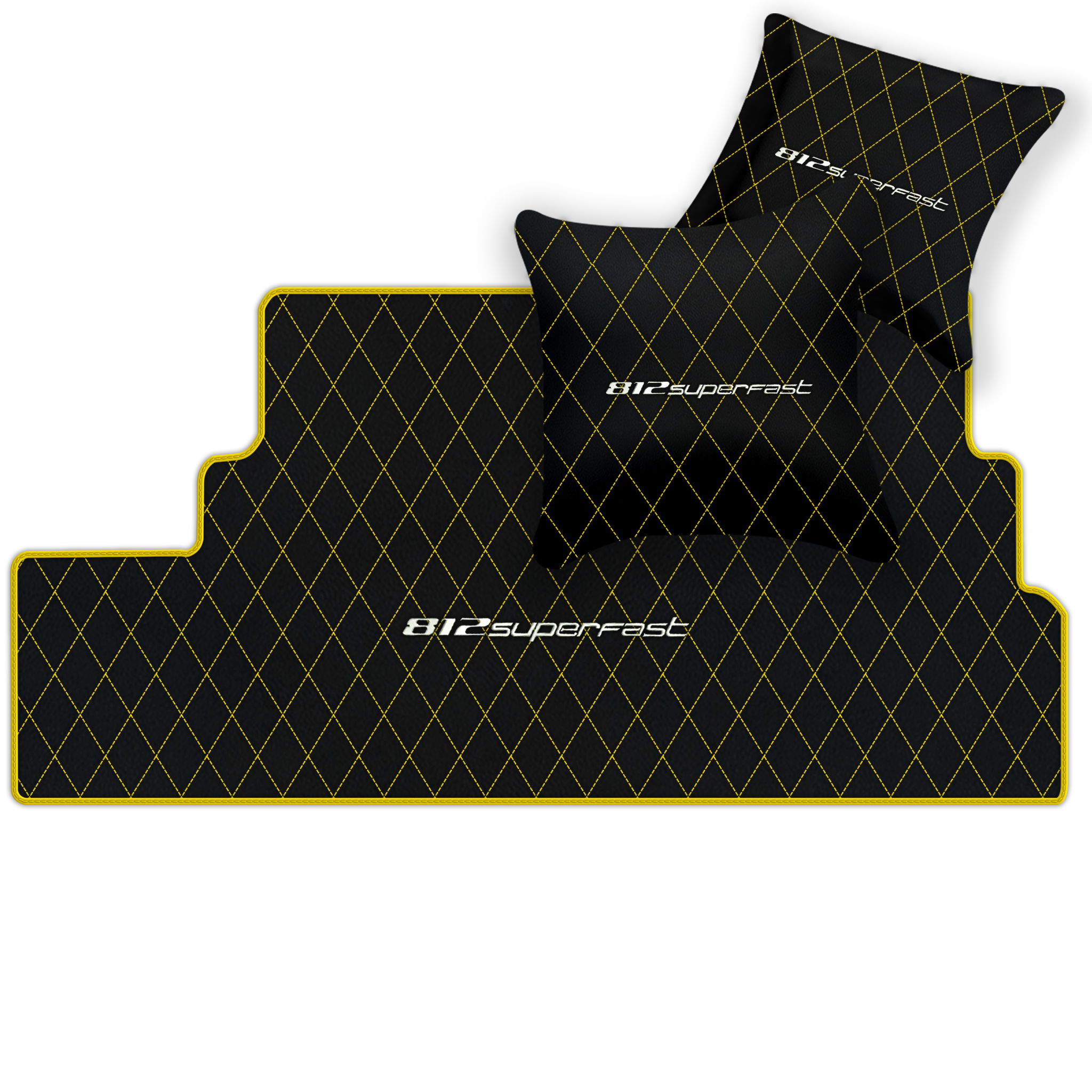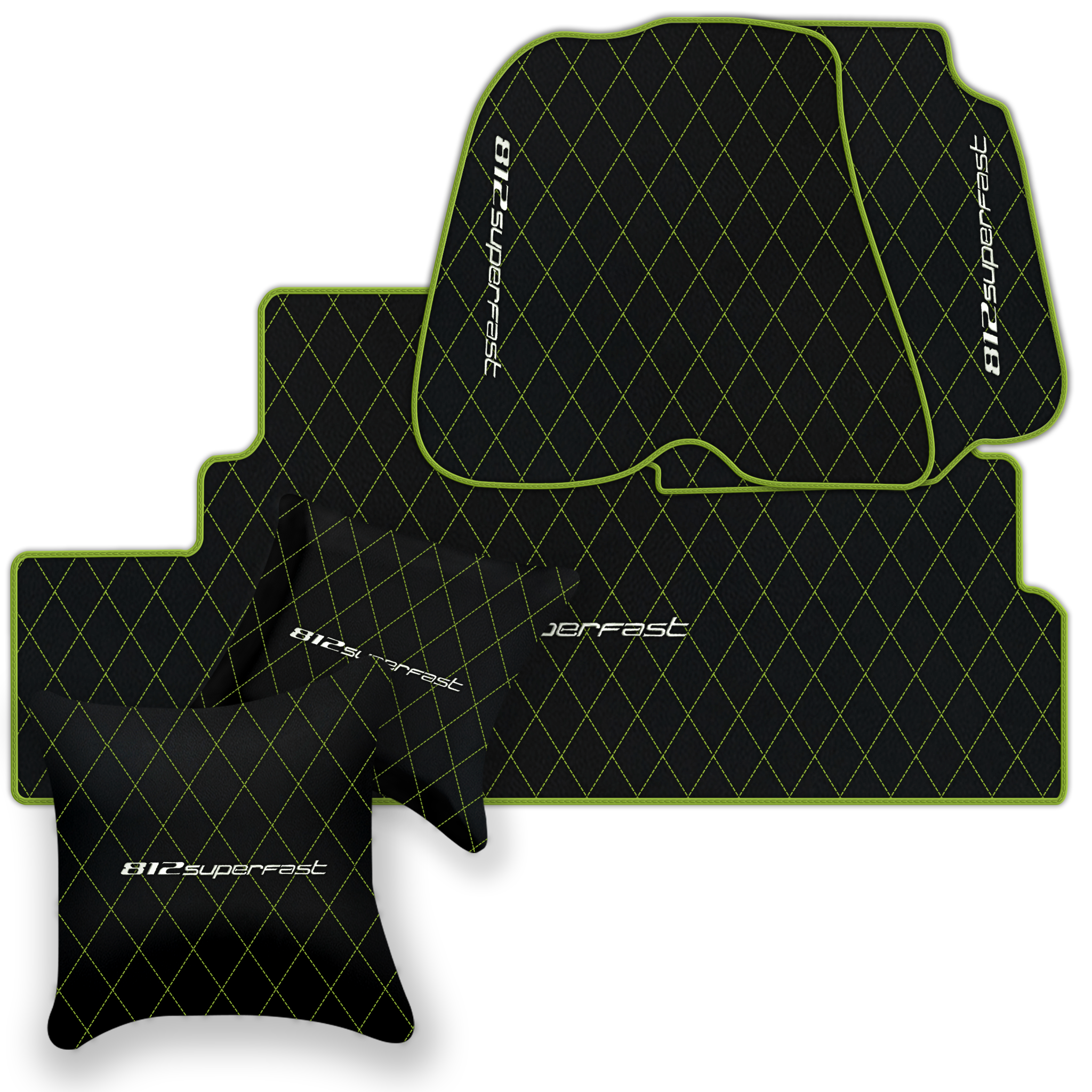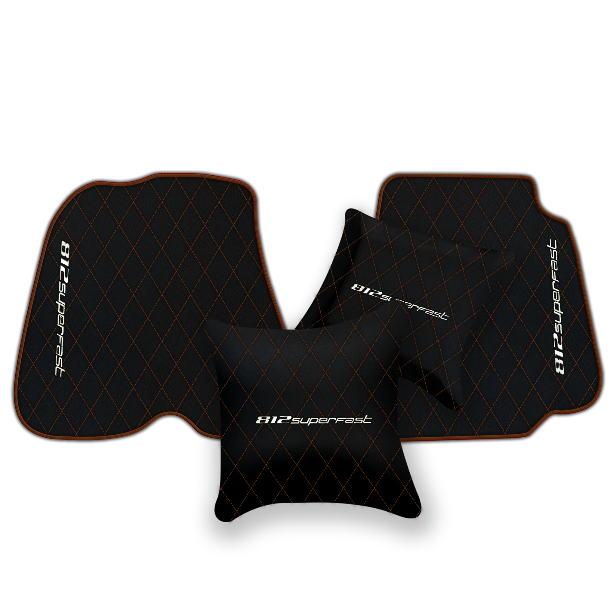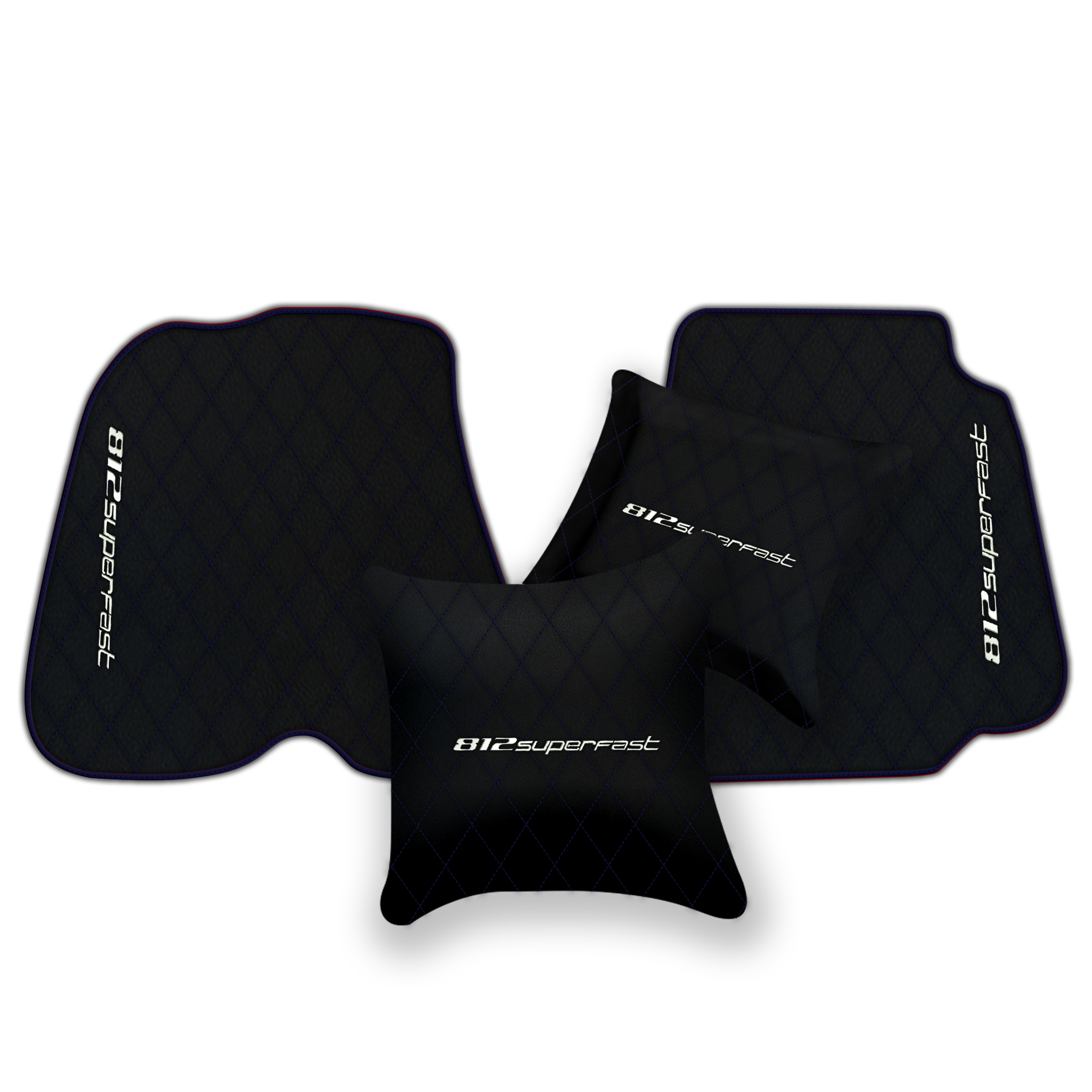 Upgrade your Ferrari 812 Superfast interior with premium leather floor mats. Choose from multiple design patterns and custom stitching to match your style.